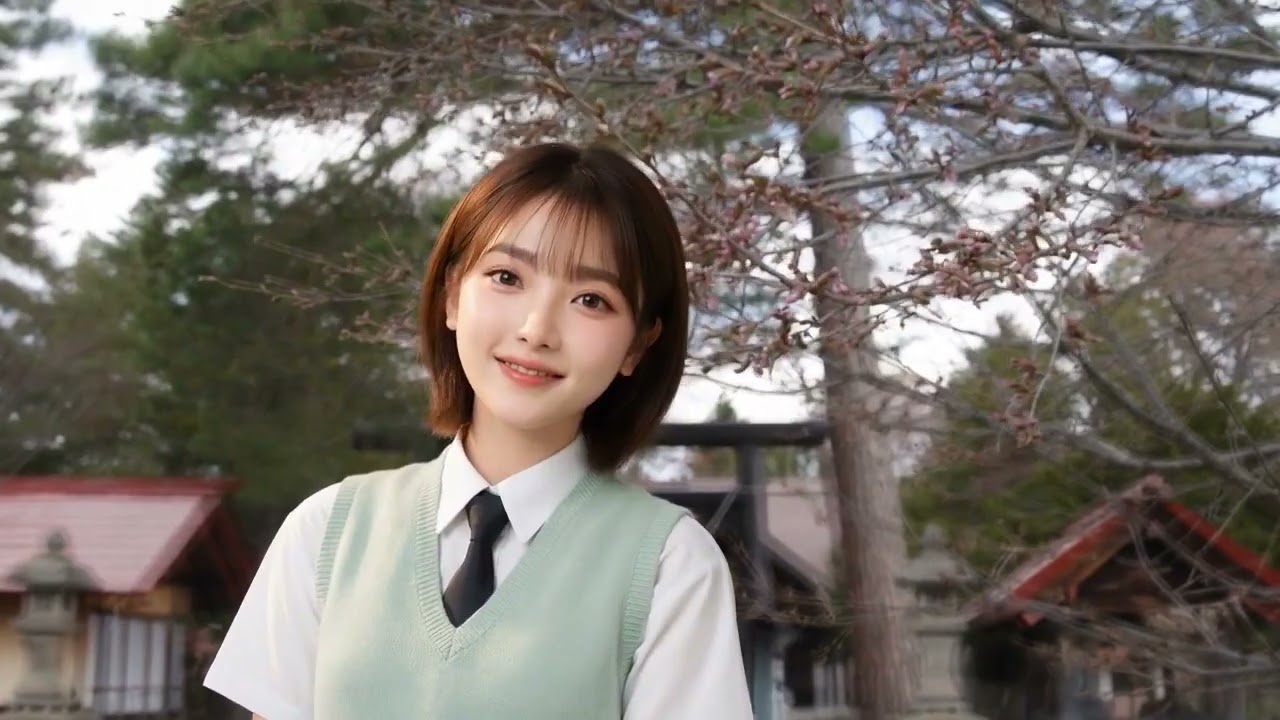 【AI癒し系アイドル・七海】山部神社の桜がもう咲きそう🌸 優しい春のひととき